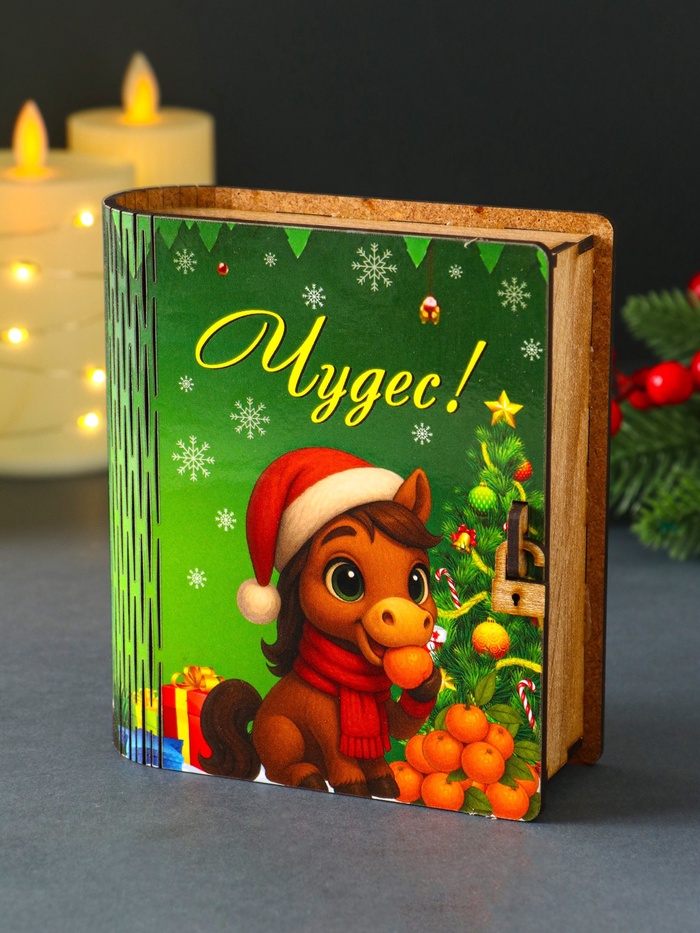 Новогодняя деревянная шкатулка-книга «Конь. Чудес», 14×12×5 см