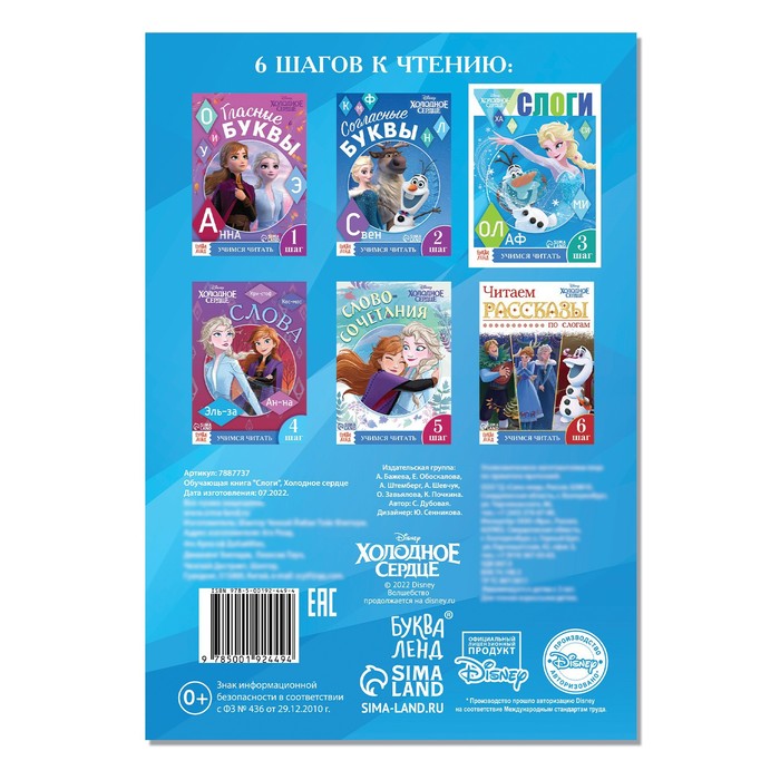 Обучающая книга «Учимся читать. Слоги», 3 шаг, А5, 24 стр., Холодное сердце