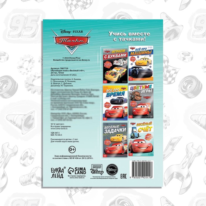 Технические характеристики Обучающая книга «Весёлый счёт», 20 стр., А5, Тачки