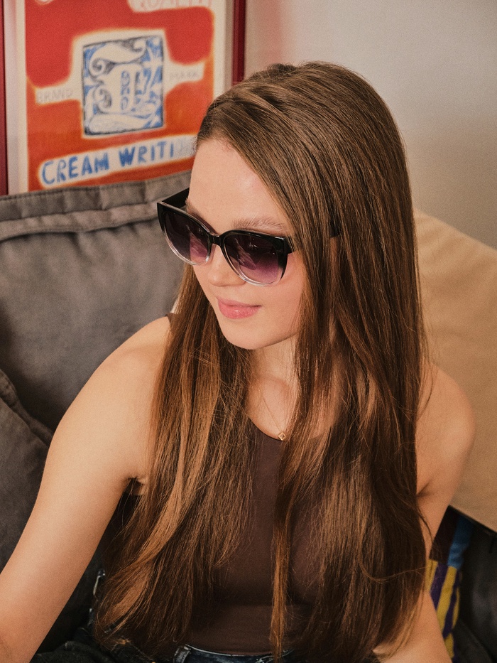 - Абсолютный комфорт для глаз: фиолетовые линзы с градиентным переходом смягчают яркий свет, сохраняя четкость обзора и естественную цветопередачу.