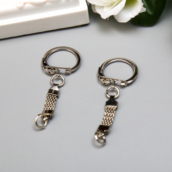 Основа для брелока карабин металл с плоской цепочкой серебро набор 15 шт 5,8х2,2 см