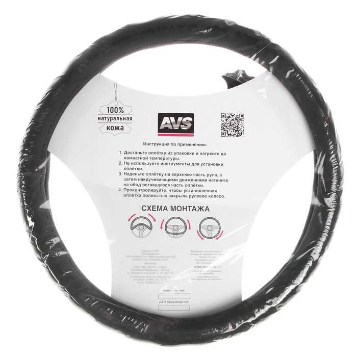 Оплетка на руль AVS GL-165M-B, размер M, черный