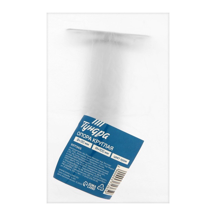 Технические характеристики Опора круглая OKR001CR ТУНДРА, d=30 мм, H=100 мм, цвет хром, 4 шт.