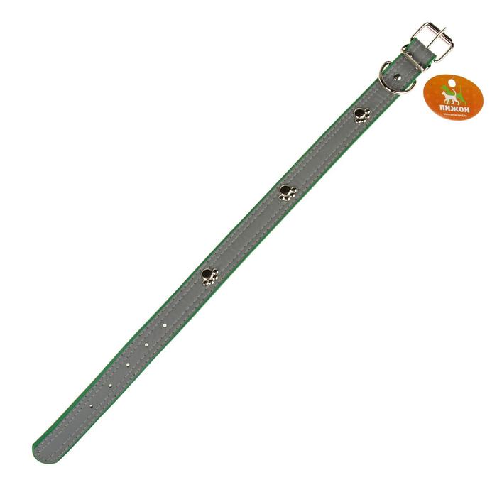 Ошейник «Лапки» со светоотражающей полосой, 59×3 см, искусственная кожа, зелёный