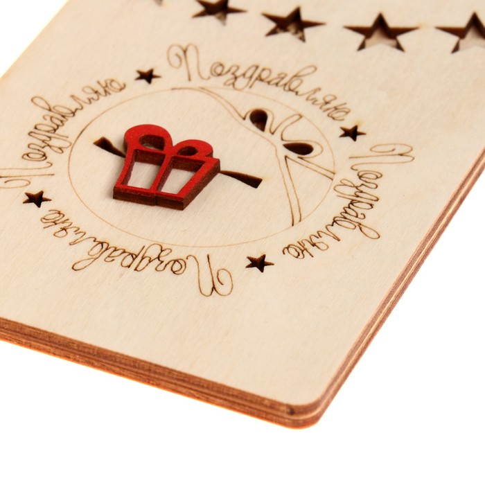 Открытка деревянная "Поздравляю!" ручная работа, подарок