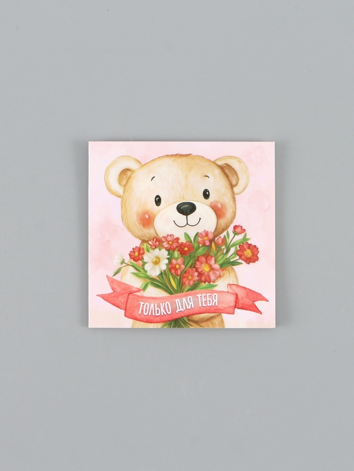 Открытка мини «Мишка с цветами», 7 × 7 см