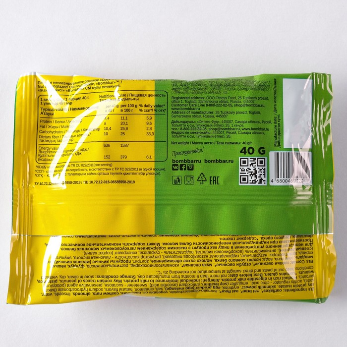 Овсяное печенье Bombbar, ореховый микс, спортивное питание, 40 г