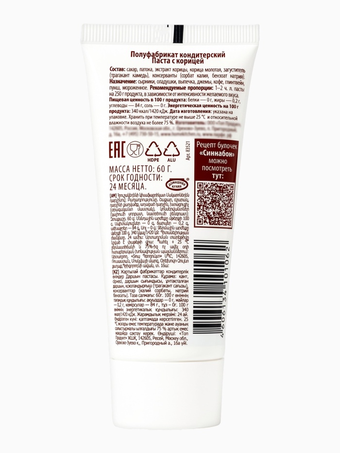 Ароматная паста с корицей — это готовая начинка, которая добавит праздничной выпечке тёплый, согревающий вкус и знакомый с детства аромат. Её однородная текстура идеально подходит для равномерного распределения внутри теста.