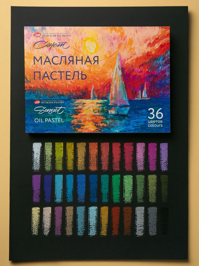 Компактный набор удобно использовать дома, в учебных классах и на пленэрах. 36 цветов раскрывают потенциал творчества и дают свободу экспериментов с колоритом и деталями. Масляная пастель «Сонет» объединяет качество, удобство и художественную выразительность, поддерживая любые художественные идеи.