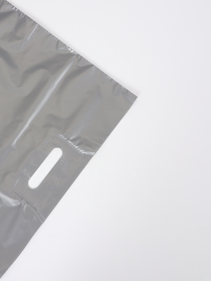 Пакет с вырубной усиленной ручкой ПВД 40х50 45 мкм серебряный