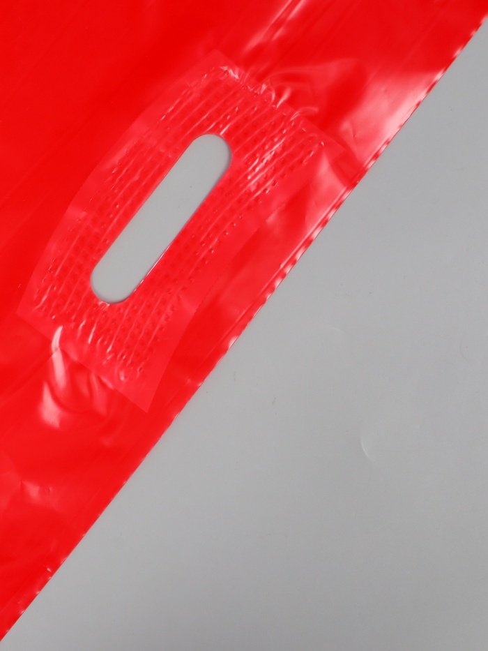 Пакет с вырубной усиленной ручкой ПВД, Красный, 40×50 см, 45 мкм