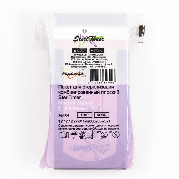 Пакет комбинированный SteriTimer для пар. и воздуш. стерилизации, самоклеющийся 60 х 100 мм