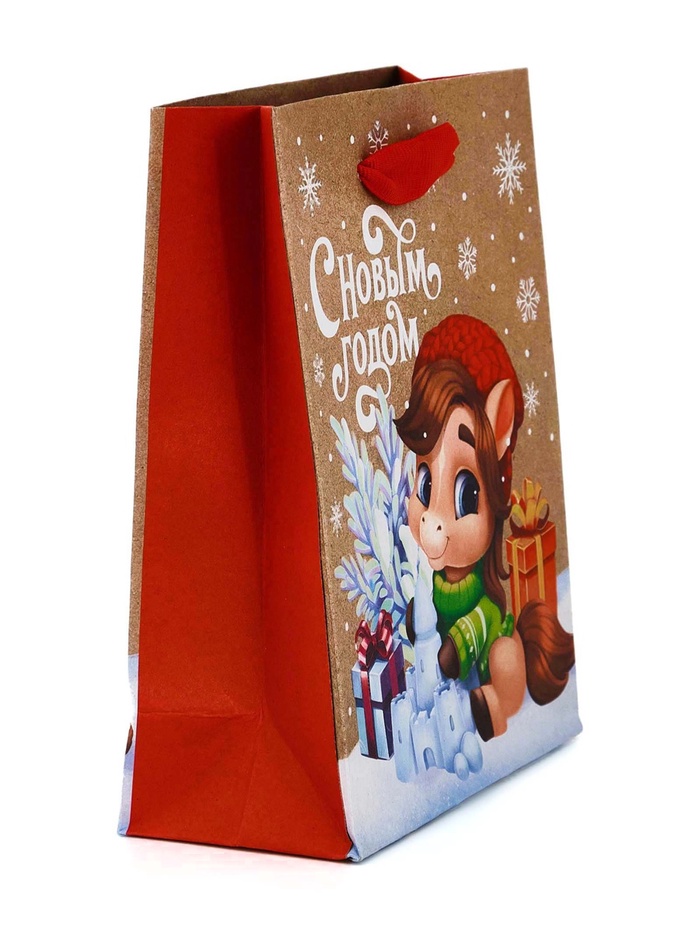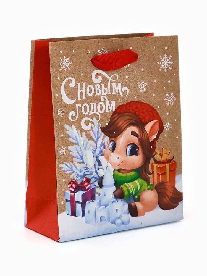 Пакет крафтовый подарочный «С Новым годом 2026», лошадь, S 12 × 15 × 5.5 см