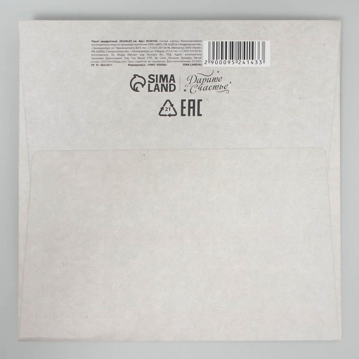 Технические характеристики Пакет квадратный «С новым счастьем», 20 х 20 х 20 см