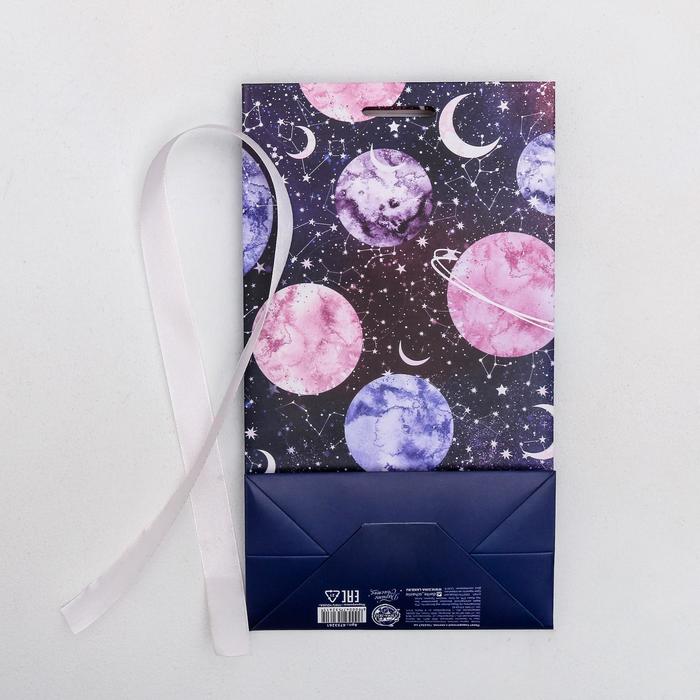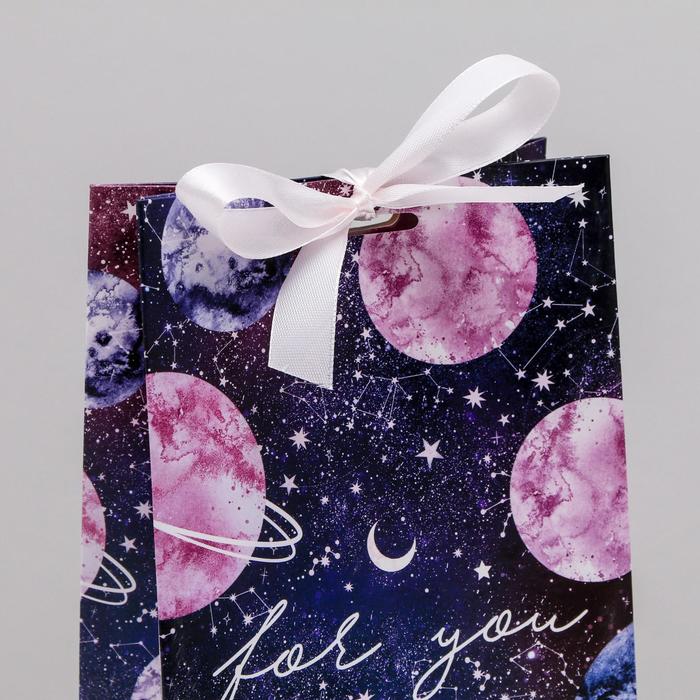 Пакет подарочный с лентой, упаковка, «For you», 13 х 23 х 7 см