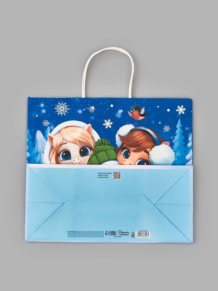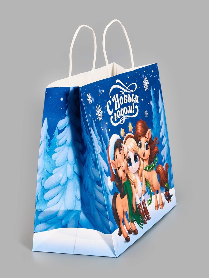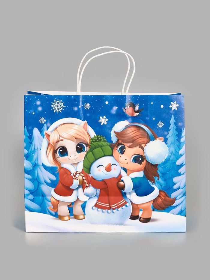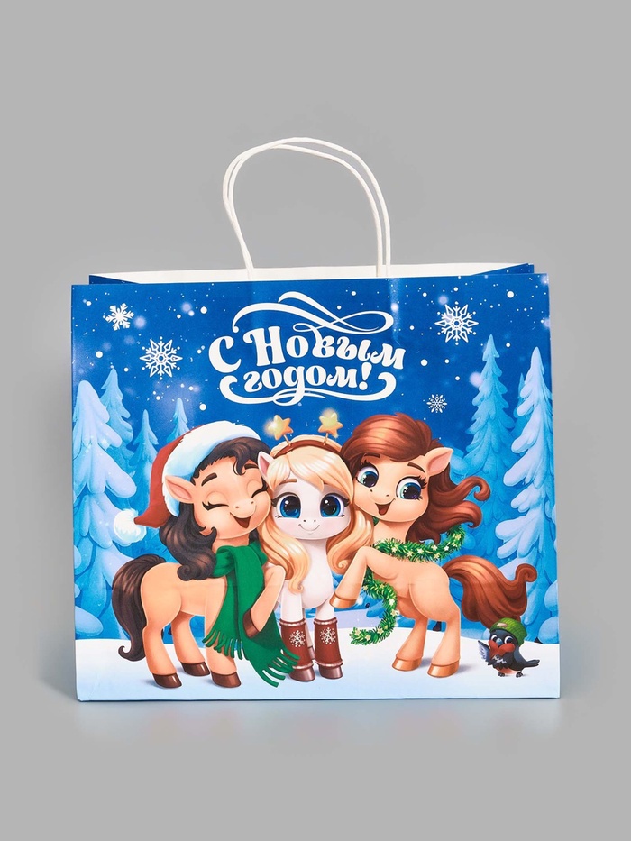 Технические характеристики Пакет подарочный новогодний «Лошадки 2026», белый крафт, 32×28×15 см