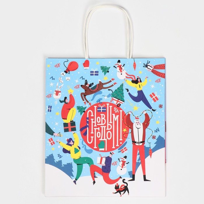 Пакет подарочный крафтовый «Новогодняя суматоха», 22 х 25 х 12 см