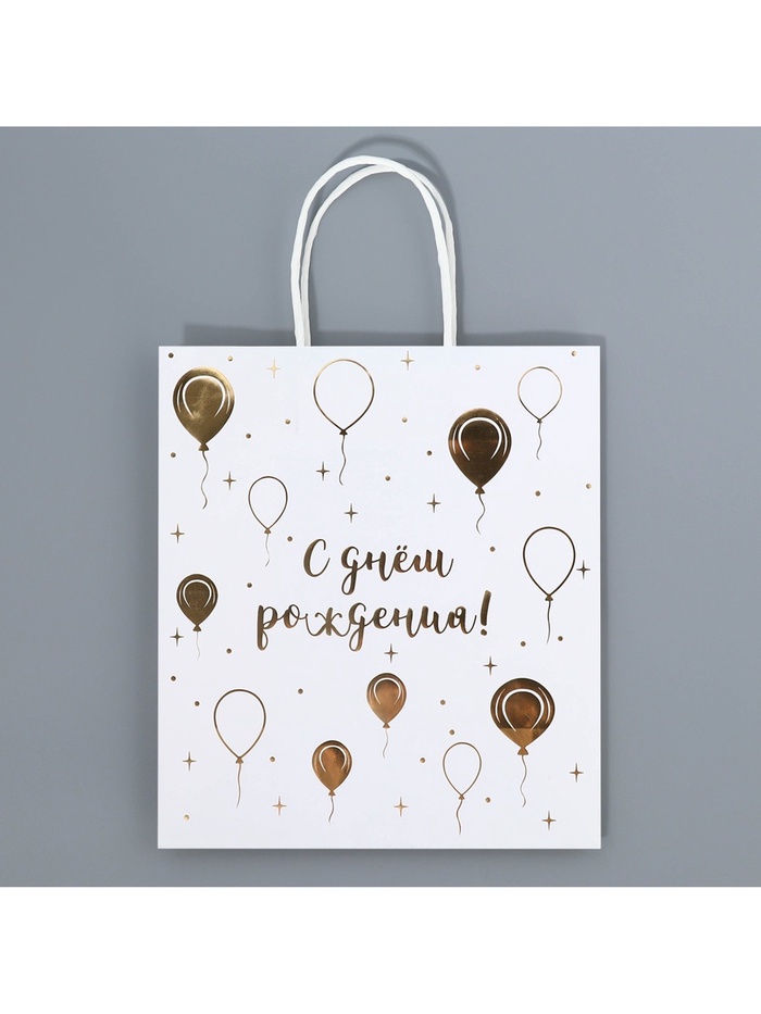 Пакет подарочный крафтовый, упаковка, «С днём рождения!», 22×25×12 см