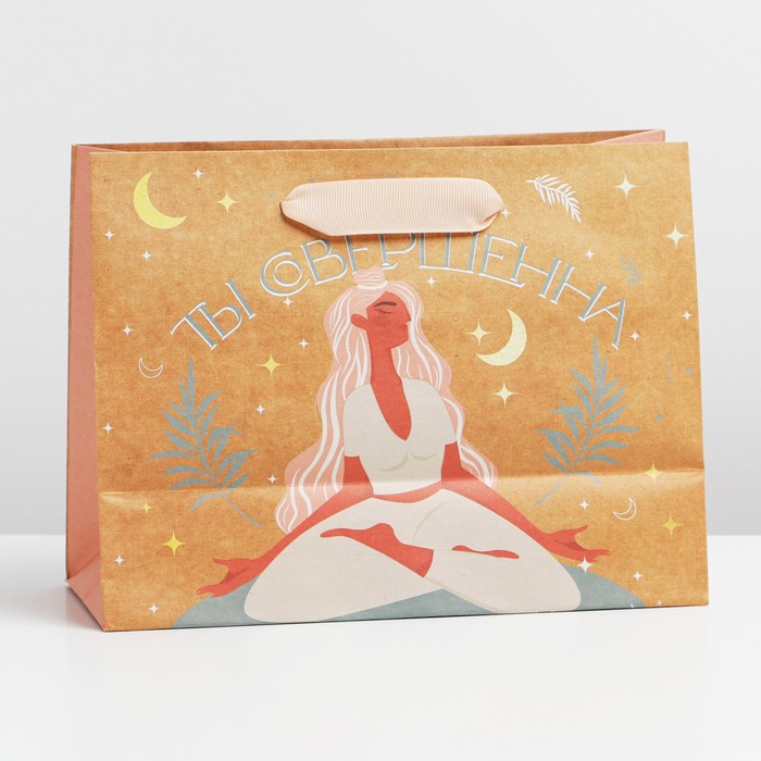 Пакет подарочный крафтовый, упаковка, «Ты совершенна», MS 23 х 18 х 8 см