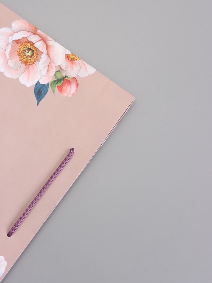 - Ручка-шнур: Пакет укомплектован прочными шнуровыми ручками. Они выдерживают нагрузку, не врезаются в руки. Ручки завязаны узлами, надёжно закреплены, не оторвутся в дороге.