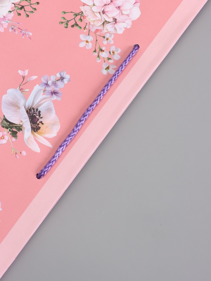 - Ручка-шнур: Пакет укомплектован прочными шнуровыми ручками. Они выдерживают нагрузку, не врезаются в руки. Ручки завязаны узлами, надёжно закреплены, не оторвутся в дороге.