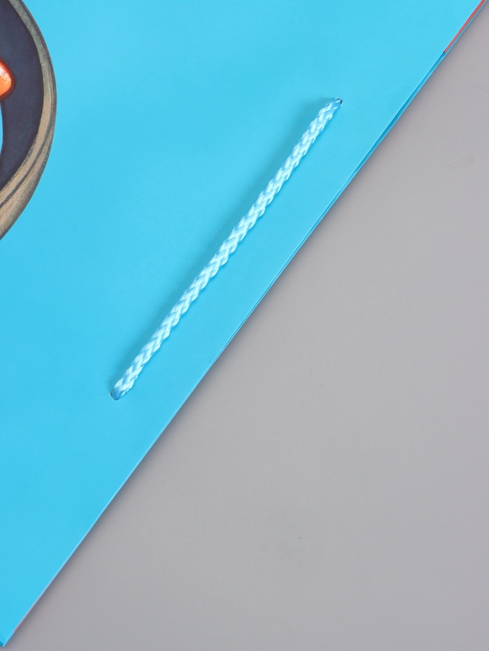 - Ручка-шнур: Пакет укомплектован прочными шнуровыми ручками. Они выдерживают нагрузку, не врезаются в руки. Ручки завязаны узлами, надёжно закреплены, не оторвутся в дороге.