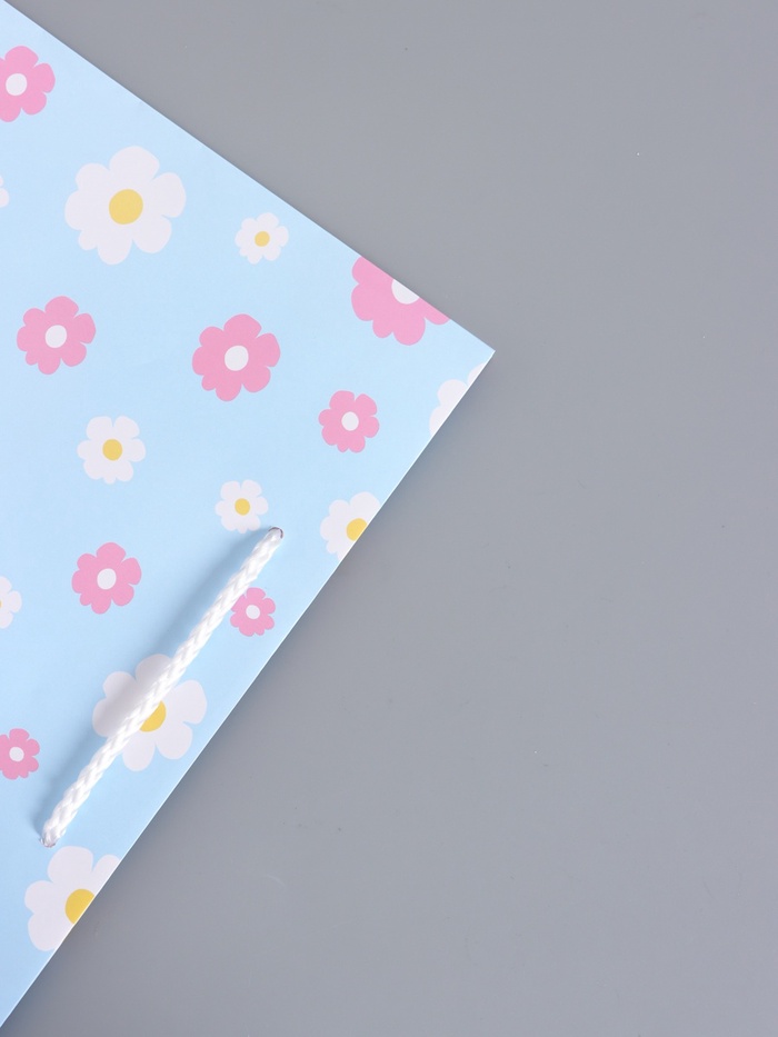 - Удобные ручки из плетёного шнура: Ручки обеспечивают комфортный хват и надёжно держат пакет. Они выдерживают вес подарка, не нарушая целостности милой композиции.