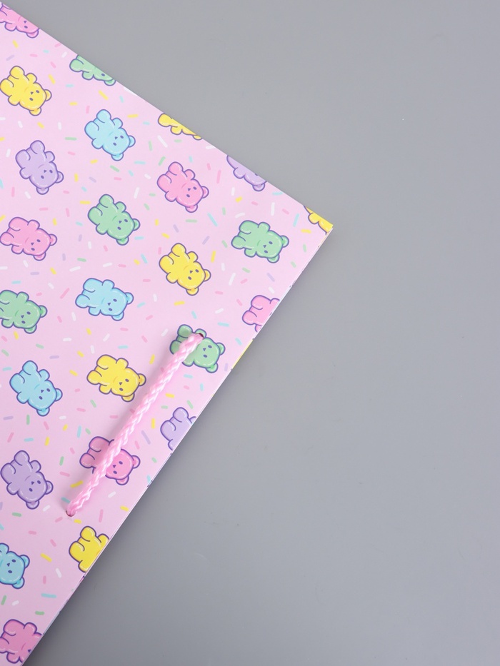 - Дизайн, который дарит улыбку: Розовая палитра, озорные мишки и яркие блестки конфетти обращаются к самым теплым воспоминаниям. Такой пакет говорит о сладком сюрпризе внутри и идеально подходит для подарка девочке или женщине на 8 Марта, День рождения или 14 Февраля.