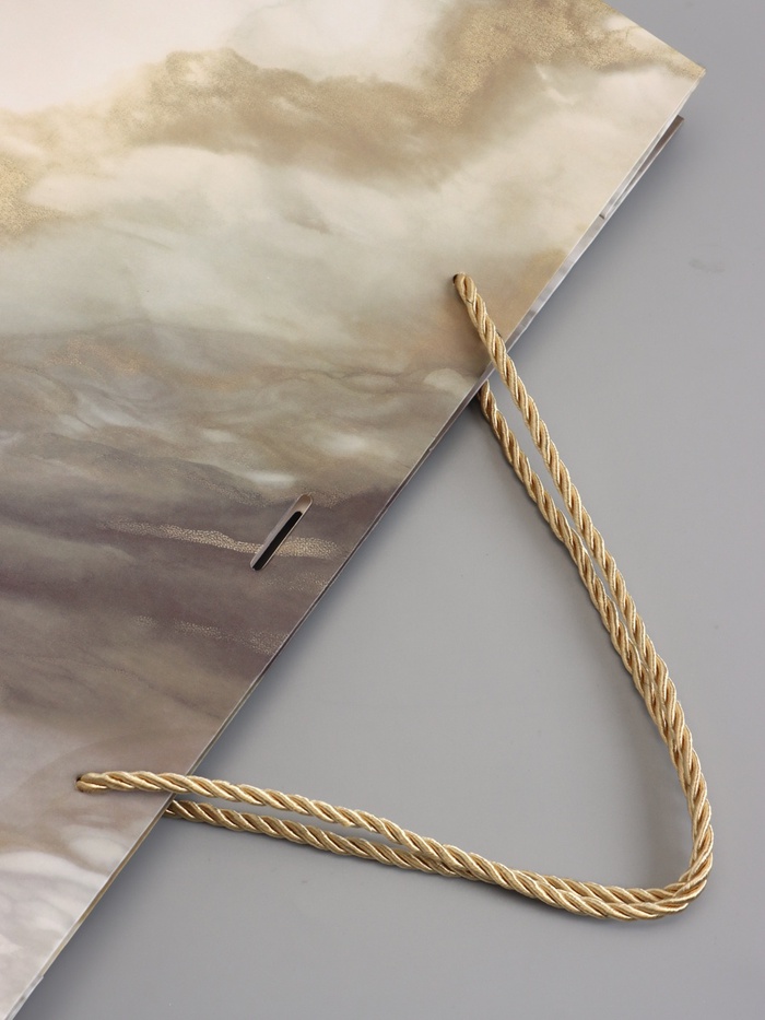 Серо-бежевый мрамор в формате XL. Ламинированный подарочный пакет «Мрамор», серо-бежевый — это упаковка большого размера (35×30×10 см) с рисунком под натуральный камень, элегантной надписью и прикреплённым шнуровым бантом. Плотность картона 190 г/м², ламинация защищает от влаги.
