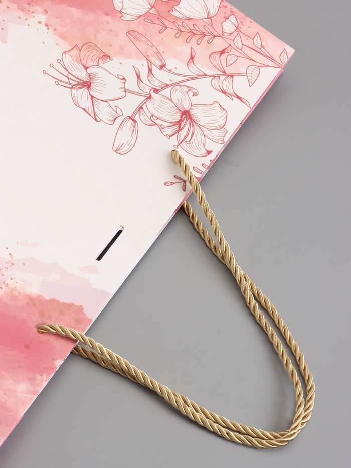 - Ручка-шнур с бантом: Пакет уже завязан — не нужно подбирать ленту, тратить время на упаковку. Ручки выполнены из прочного шнура, выдерживают нагрузку, не врезаются в руки. Бант прикреплён намертво, не развяжется в дороге.