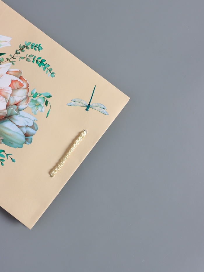 Пакет подарочный ламинированный «Стрекоза», пудровый, 18×22.3×10 см