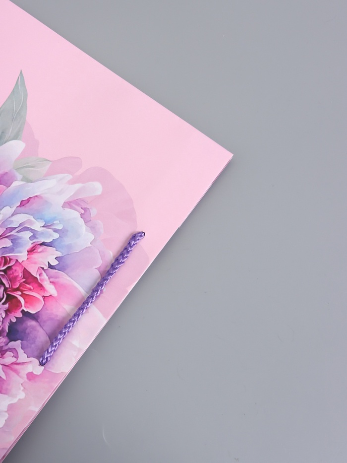 - Прочная ручка из шнура: Удобная плетёная ручка обеспечивает комфортный хват. Она надёжно держит пакет, не деформируясь под весом подарка.