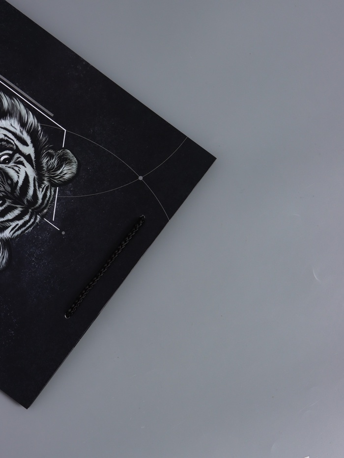 - Дизайн с акцентом на характер: Графичный рисунок в духе анималистичных татуировок и чёткие линии создают современный и брутальный образ. Такая упаковка уместна для подарка мужчине или подростку на день рождения, 23 февраля или без особого повода.
