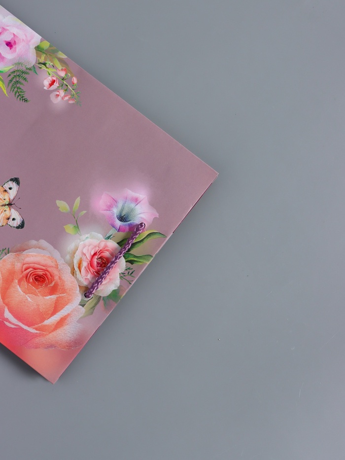 - Благородная ламинированная поверхность: Плотность 180 г/м² и глянцевая ламинация усиливают глубину пурпурного цвета, придавая рисунку объём и яркость. Пакет выглядит дорого и празднично.