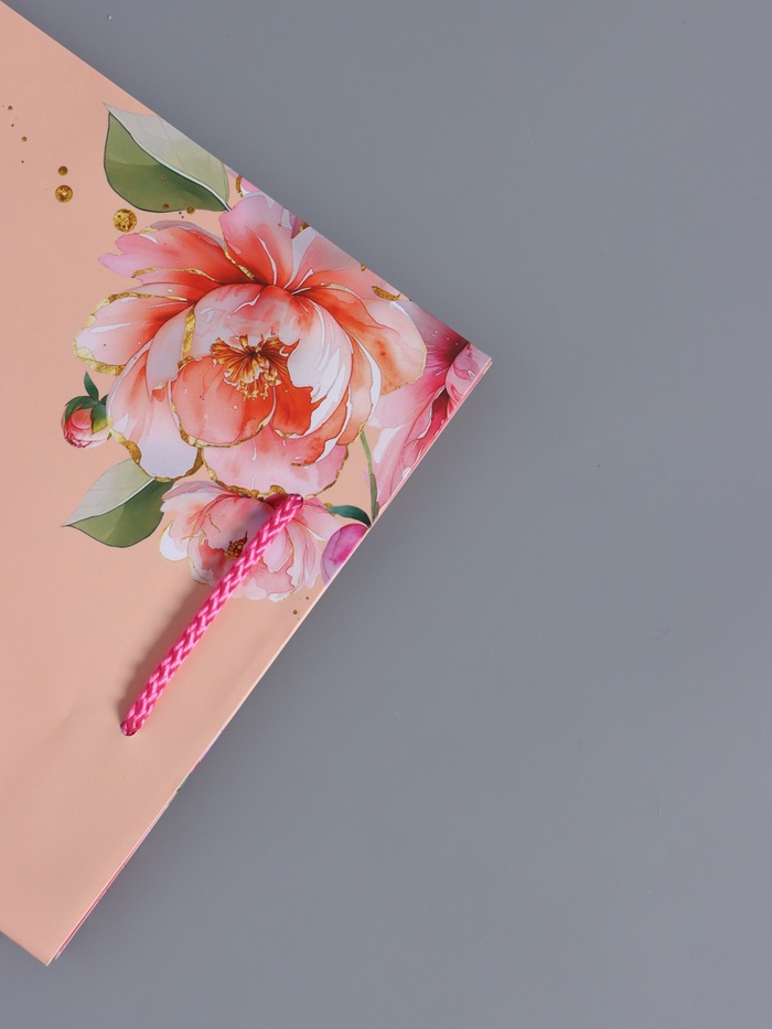Пакет подарочный ламинированный «Цветы», нежно - розовый, 18×22.3×10 см