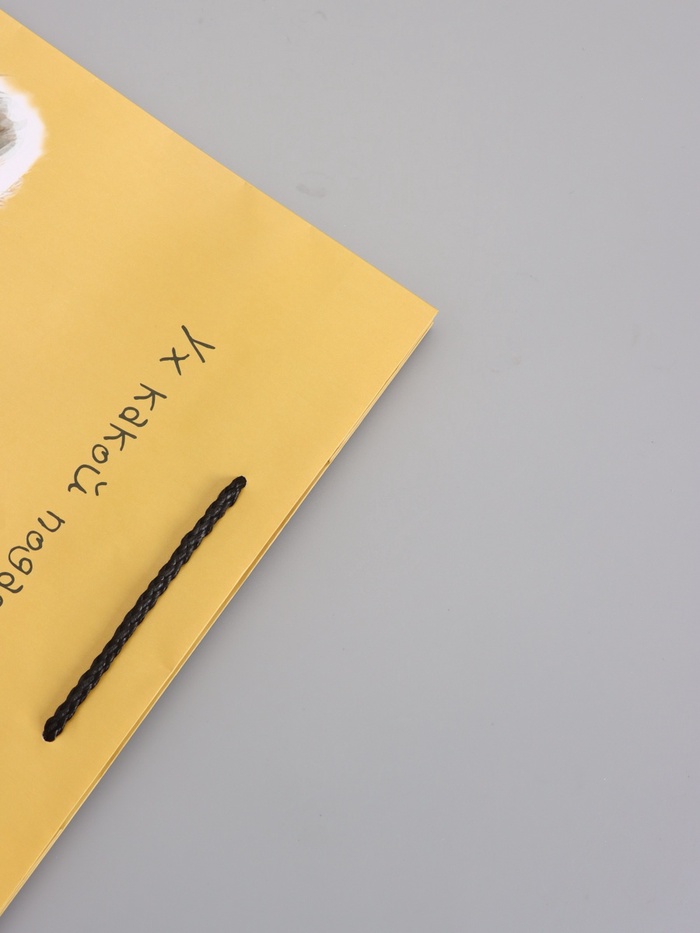 - Ручка-шнур: Пакет укомплектован прочными шнуровыми ручками. Они выдерживают нагрузку, не врезаются в руки. Ручки завязаны узлами, надёжно закреплены, не оторвутся в дороге.