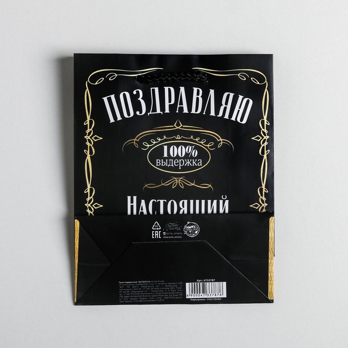 Технические характеристики Пакет подарочный ламинированный, упаковка, «Настоящий мужчина», S 12 х 15 х 5.5 см