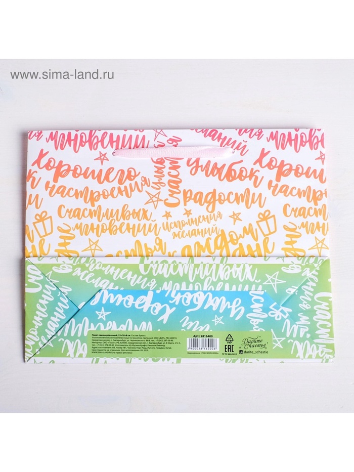 Пакет подарочный ламинированный, упаковка, «Радости!», ML 23 x 27 x 11.5 см
