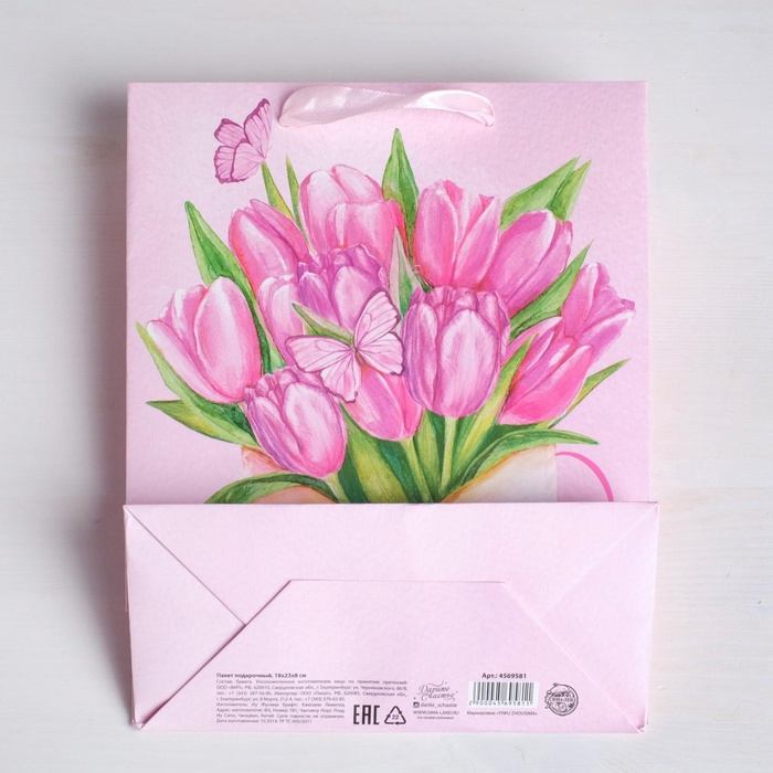 Пакет подарочный ламинированный, упаковка, «Тюльпаны 8 марта», MS 18 х 23 х 10 см