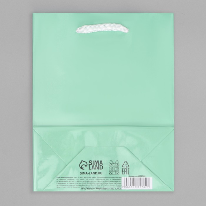 Пакет подарочный ламинированный, упаковка, «Зелёный», S 12 х 15 х 5.5 см