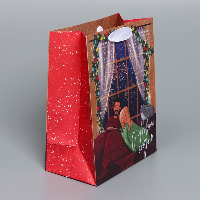 Пакет подарочный новогодний крафтовый «Салюты», MS 18 х 23 х 10 см