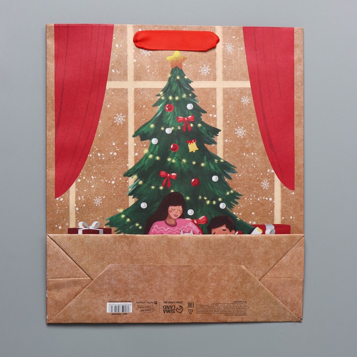 Технические характеристики Пакет подарочный новогодний крафтовый «Уют в доме», M 26×30×9 см
