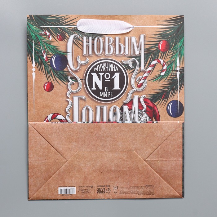 Технические характеристики Пакет подарочный новогодний крафтовый вертикальный «Идеальному мужчине», ML 23 х 27 х 11,5 см