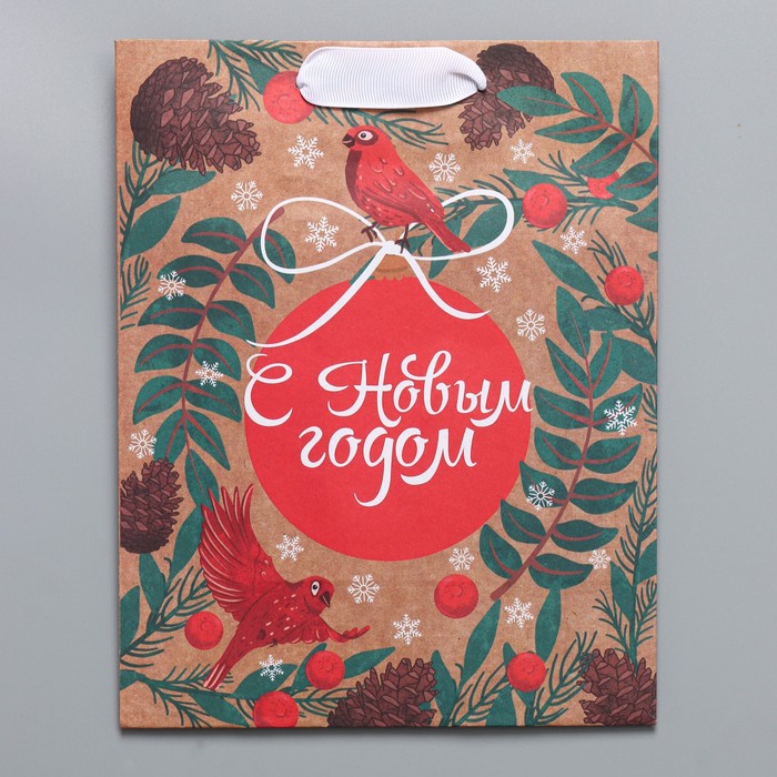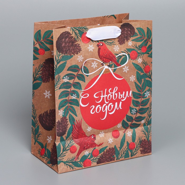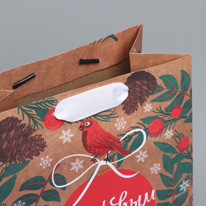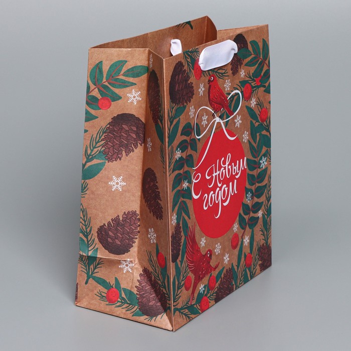 Пакет подарочный новогодний крафтовый вертикальный «Новогоднее мгновение», MS 18 х 23 х 10 см