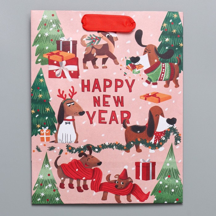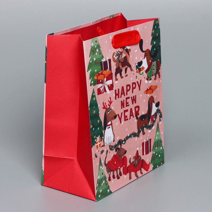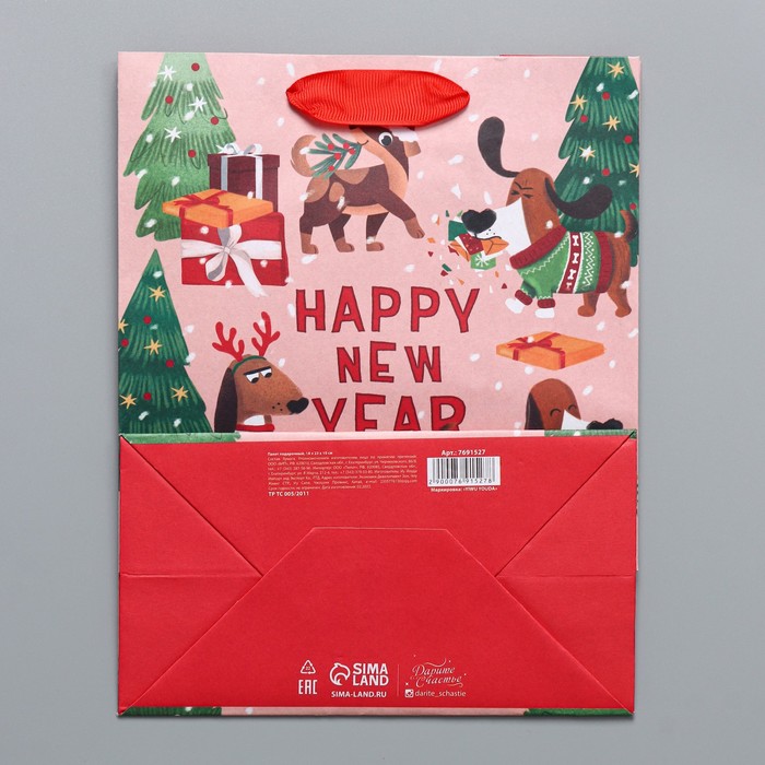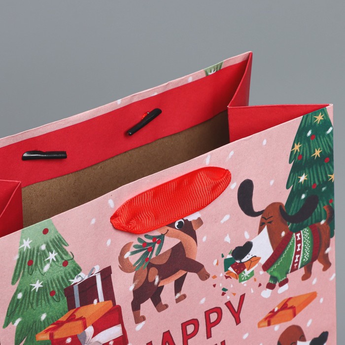 Технические характеристики Пакет подарочный новогодний крафтовый вертикальный «Собачьи истории», MS 18 х 23 х 10 см