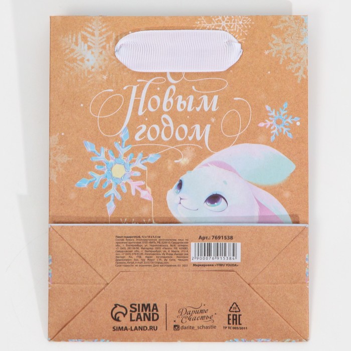 Технические характеристики Пакет подарочный новогодний крафтовый вертикальный «Загадай желание», S 12 х 15 х 5.5 см