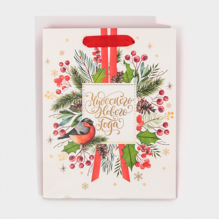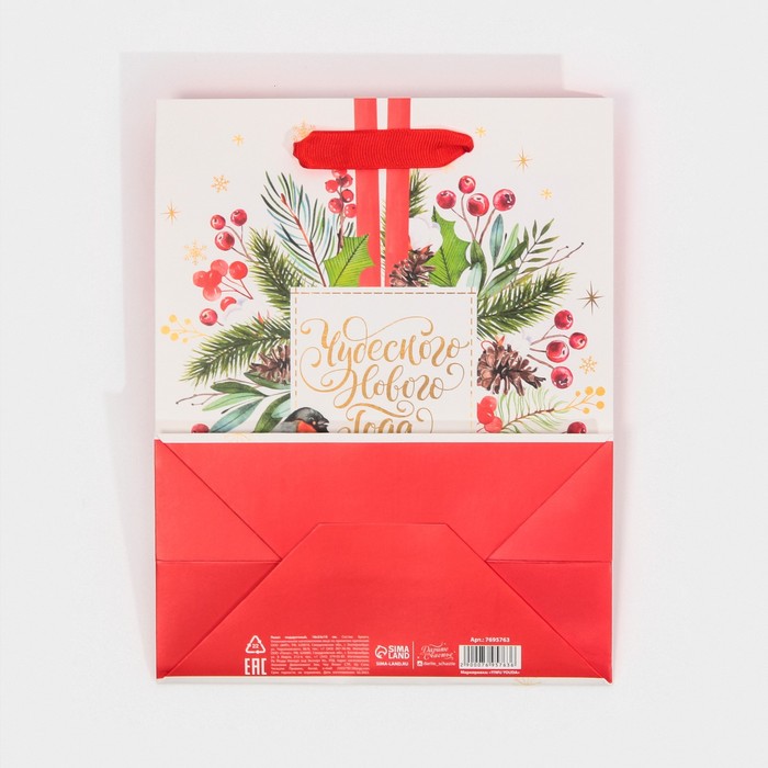 Пакет подарочный новогодний ламинированный «Чудесного Нового Года», MS 18×23×10 см