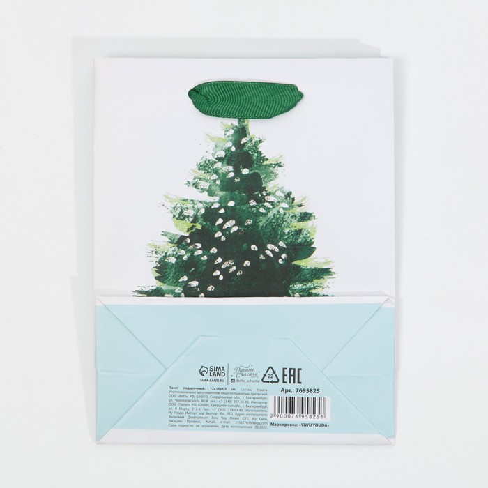 Пакет подарочный новогодний ламинированный «Морозная свежесть», 12 х 15 х 5.5 см