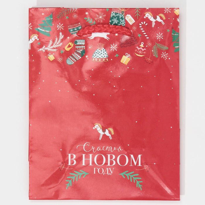 Пакет подарочный новогодний ламинированный «Счастья», MS 18 х 23 х 8 см