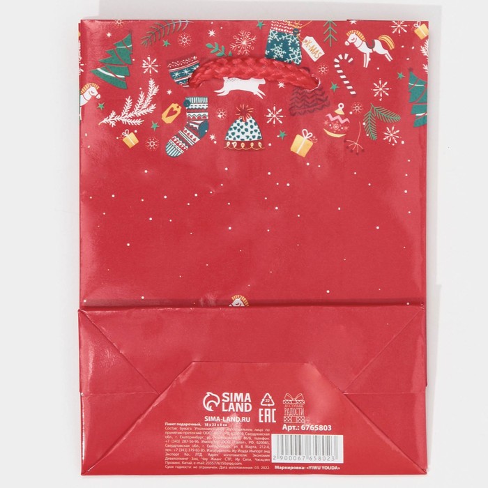 Технические характеристики Пакет подарочный новогодний ламинированный «Счастья», MS 18 х 23 х 8 см
